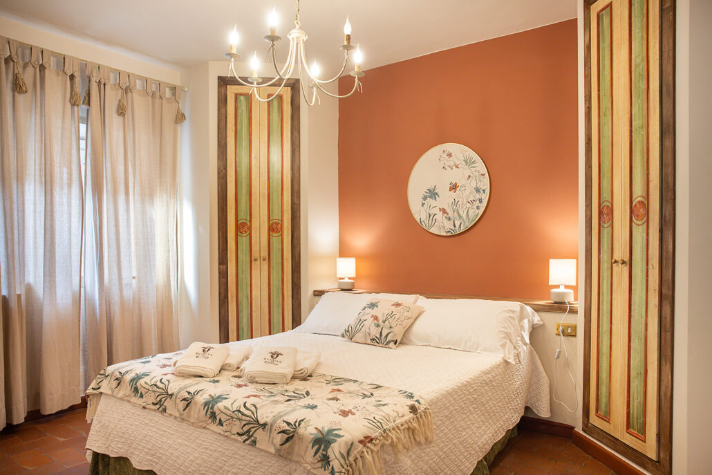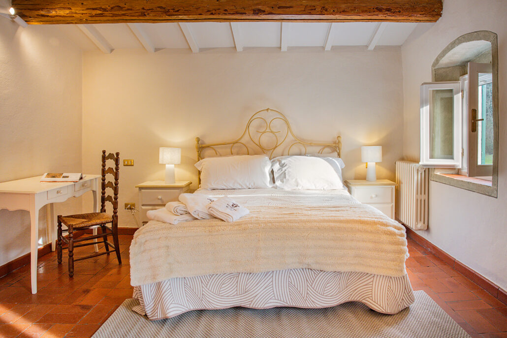 Sempre al piano primo, di lato al grande camino, si trovano le prime 2 camere matrimoniali. Luminose, ampie e molto eleganti. Il bagno completo di doccia si trova in mezzo.